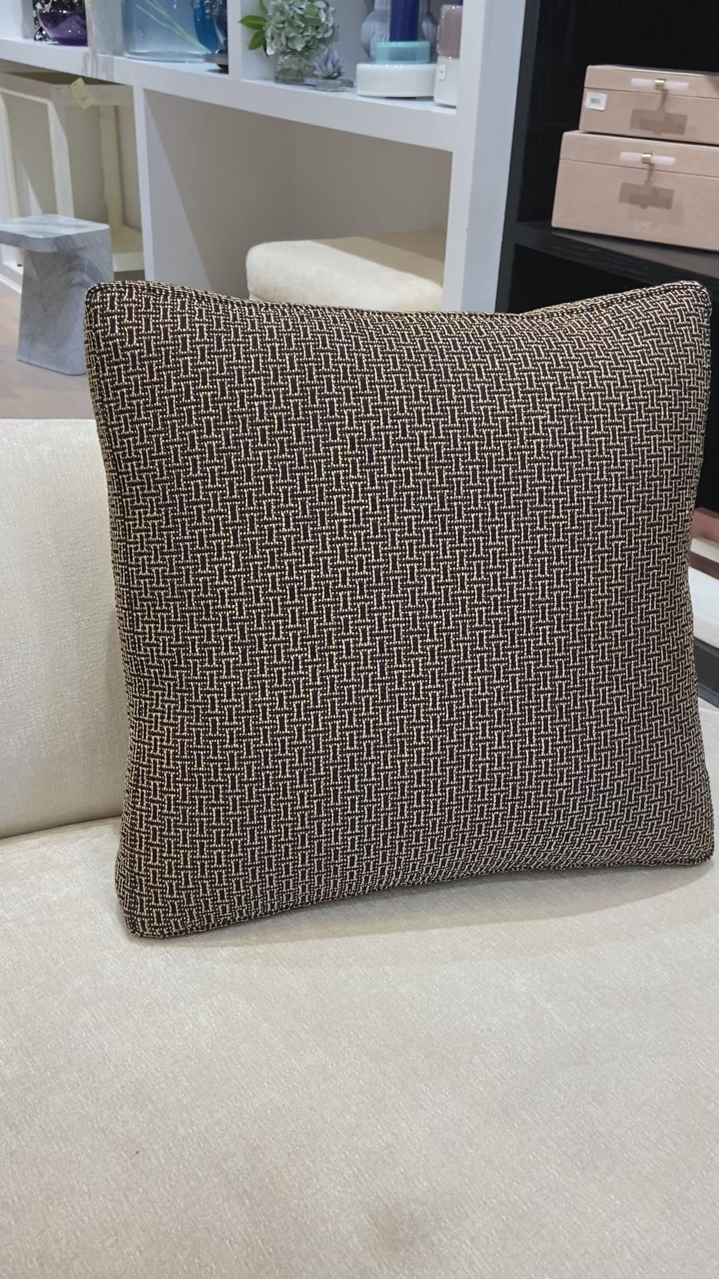 Crafted from a refined metallic weave in deep black and luminous gold, this square pillow exudes understated elegance. Its textured finish and timeless palette make it the perfect piece to elevate modern or classic décor.